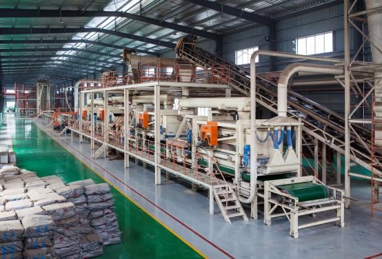 合格的表芯层干刨花经运输机、刨花计量料仓分别计量后送到拌胶机中,同时调供胶工段将工艺所要求的胶液送到拌胶机中,刨花和胶液在表芯层拌胶机的充分搅拌下,达到均匀混合充分施胶的效果。